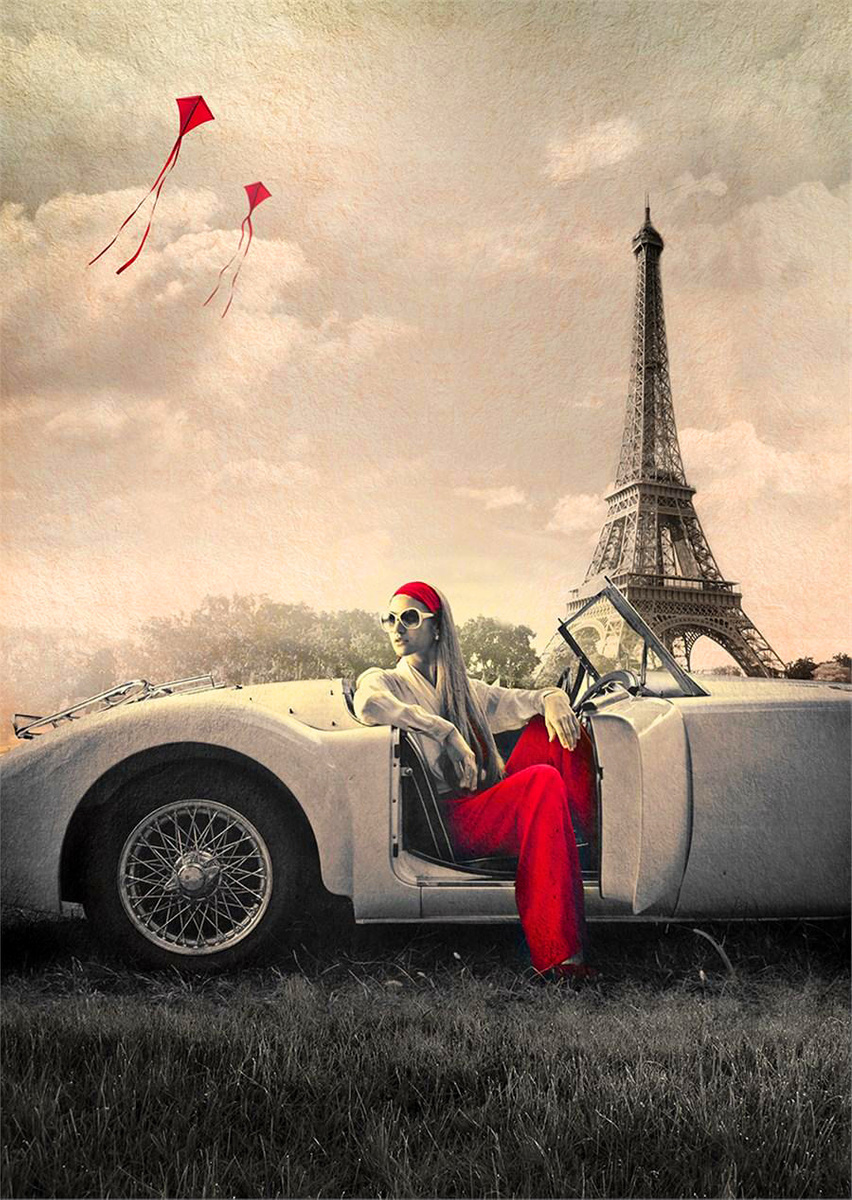 Картина по номерам Девушка в кабриолете на фоне Эйфелевой башни 40x50 на подрамнике