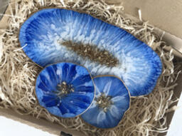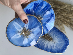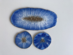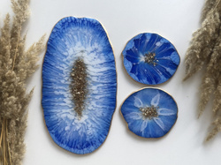 Сервировочный набор "Clouds Blue" для подачи холодных блюд и подставки для бокалов из эпоксидной смолы