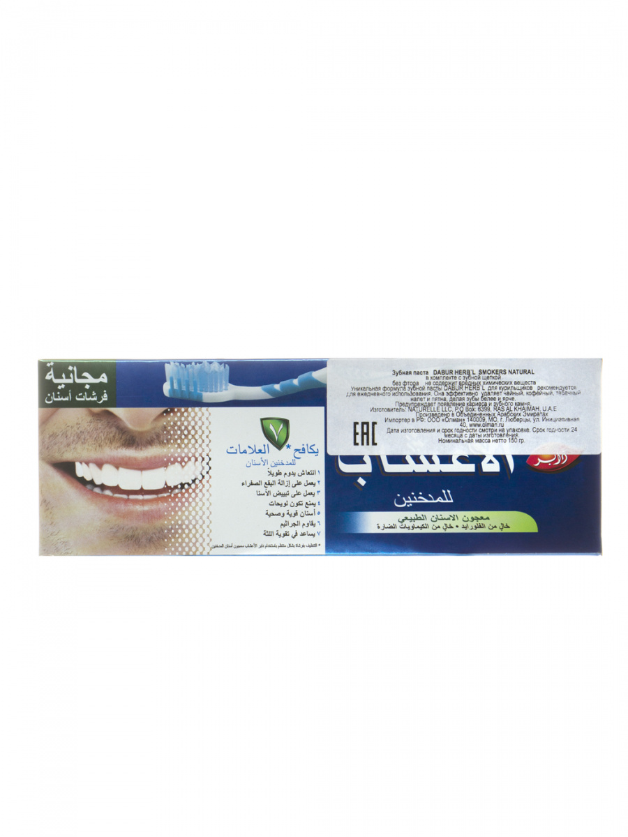 - Состав: Calcium Carbonate, Sorbitol, Aqua, Aluminium Hydroxide, Silica, Sodium Lauryl Sulphate, Flavour, Tetra Sodium Pyrophosphate, Sodium Silicate, Herbal Extract (derived frome Anacyclus pyrethrum, Acacia arabica, Mimusops elenji, Symplocos racemosa, Syzygium cumini), Carrageenan, Sodium carboxy methyl cellulose, Sodium Benzoate, Sodium Saccharin, Methyl Paraben, Glycerin, Enzyme (Papain), Propyl Paraben.