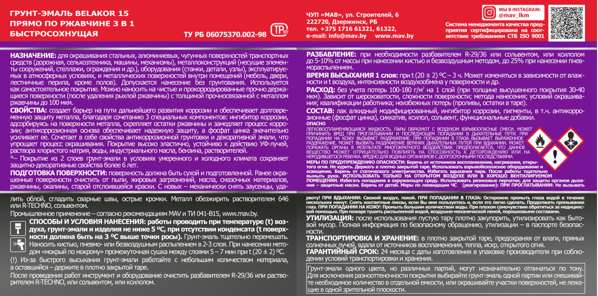 Для окрашивания стальных, алюминиевых и чугунных поверхностей транспортных средств, металлоконструкций, оборудования, эксплуатируемых в атмосферных условиях, для окраски металлических поверхностей внутри помещений; наносится без предварительного грунтования, используется как самостоятельное покрытие; подходит для нанесения на чистые и прокорродированные поверхности, а также на старые лакокрасочные покрытия. Создает барьер на пути дальнейшего развития коррозии и обеспечивает долговременную защиту металла. Расход — 100-180 г/м2 на 1 слой. Покрытие из 2 слоев грунт-эмали в умеренном и холодном климате сохраняет защитно-декоративные свойства более 6 лет. Наносить кистью, пневмораспылением или безвоздушным методом в 1-2 слоя. 2,4 л грунт-эмали покрывает 11-22 м2 в 1 слой. Представленный цвет на фото не является эталоном, т.к. монитор (экран) и принтер (в случае печати изображения) настолько близко воспроизводят реальные цвета насколько позволяют их технические параметры. Окончательно выбирайте цвет, руководствуясь реальными (оригинальными) выкрасами материала. Перед окраской делайте пробные выкрасы.