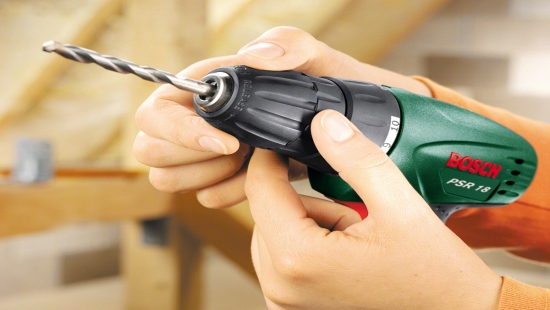 Аккумуляторная дрель-шуруповерт BOSCH PSR 18 (603955320) Используется для сверления отверстий в деревянных и металлических изделиях, или для работы в качестве шуруповерта Особенности: Функция реверса Высокопроизводительный двигатель 18 В Двухкулачковый быстрозажимной сверлильный патрон «Click» 10-ступенчатая установка крутящего момента + ступень для сверления Резиновые накладки на рукоятке для удобного хвата Встроенный в корпус светодиод для подсветки рабочей зоны Электронная регулировка частоты вращения Блокировка клавиши включателя от случайного включения В корпус встроена ниша для хранения бит