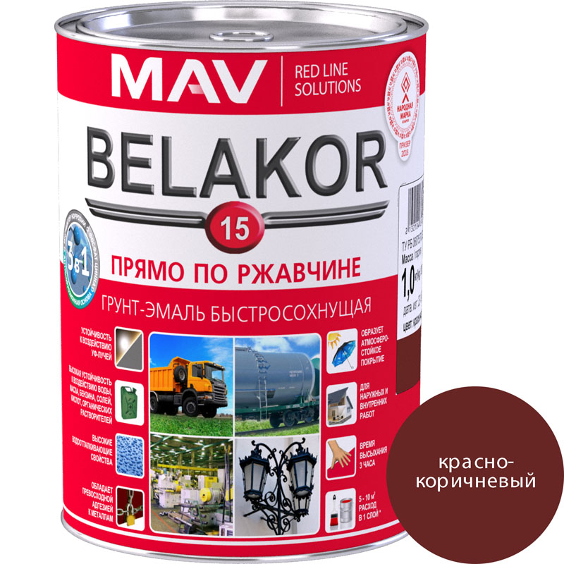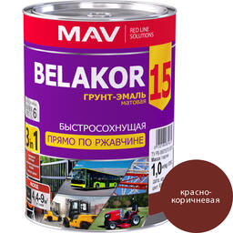 Грунт-эмаль BELAKOR 15 прямо по ржавчине 3 в 1 быстросохнущая красно-коричневая матовая 1,0л (1,0кг)