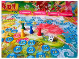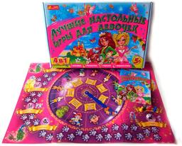 Набор из 4-х увлекательных игр для девочек. Обладательница этого набора сможет почувствовать себя Золушкой или Русалочкой, а может таинственной гадалкой или дизайнером модельером. Вместе с подружками она преодолеет все препятствия, и кроме того, интересно и весело проведет время. Количество игроков: 4-6. Рекомендуемый возраст: 5+. Продолжительность игры: 20 мин.