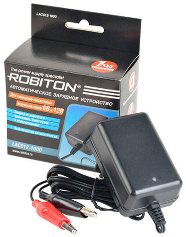 Зарядное устройство, напряжение заряжаемых АКБ: 12В, 6В, ток зарядки (максимальный) 1 А, емкость заряжаемых батарей (минимальная) 4.5 Ач, емкость заряжаемых батарей (максимальная) 14 Ач, вес 0.5 кг.