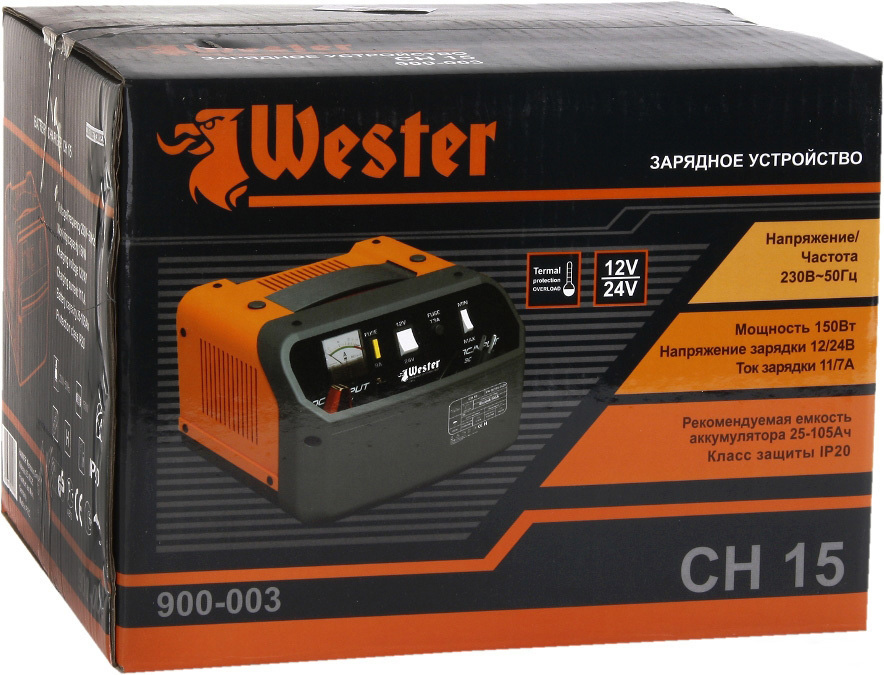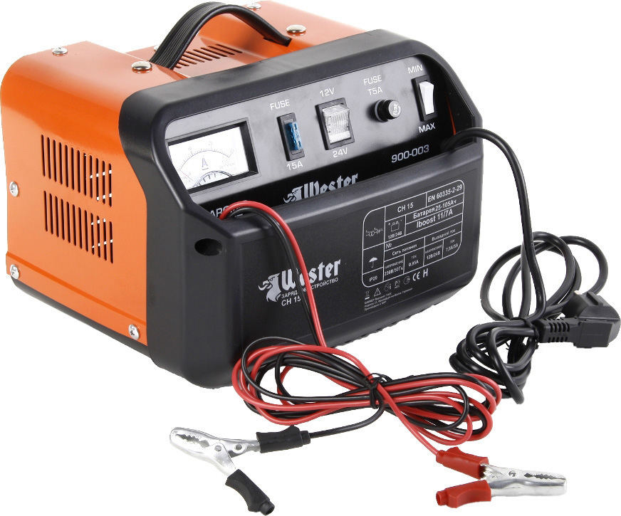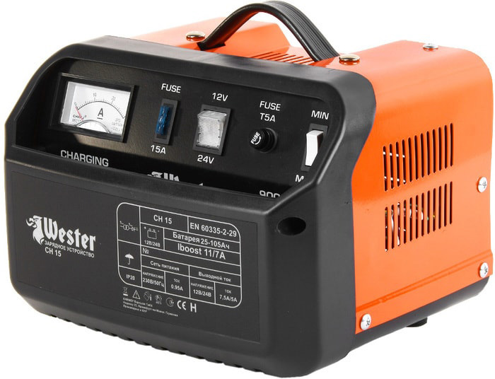 Зарядное устройство, напряжение заряжаемых АКБ: 12В, 24В, ток зарядки (минимальный) 7 А, ток зарядки (максимальный) 11 А, емкость заряжаемых батарей (минимальная) 25 Ач, емкость заряжаемых батарей (максимальная) 105 Ач, вес 5.2 кг.