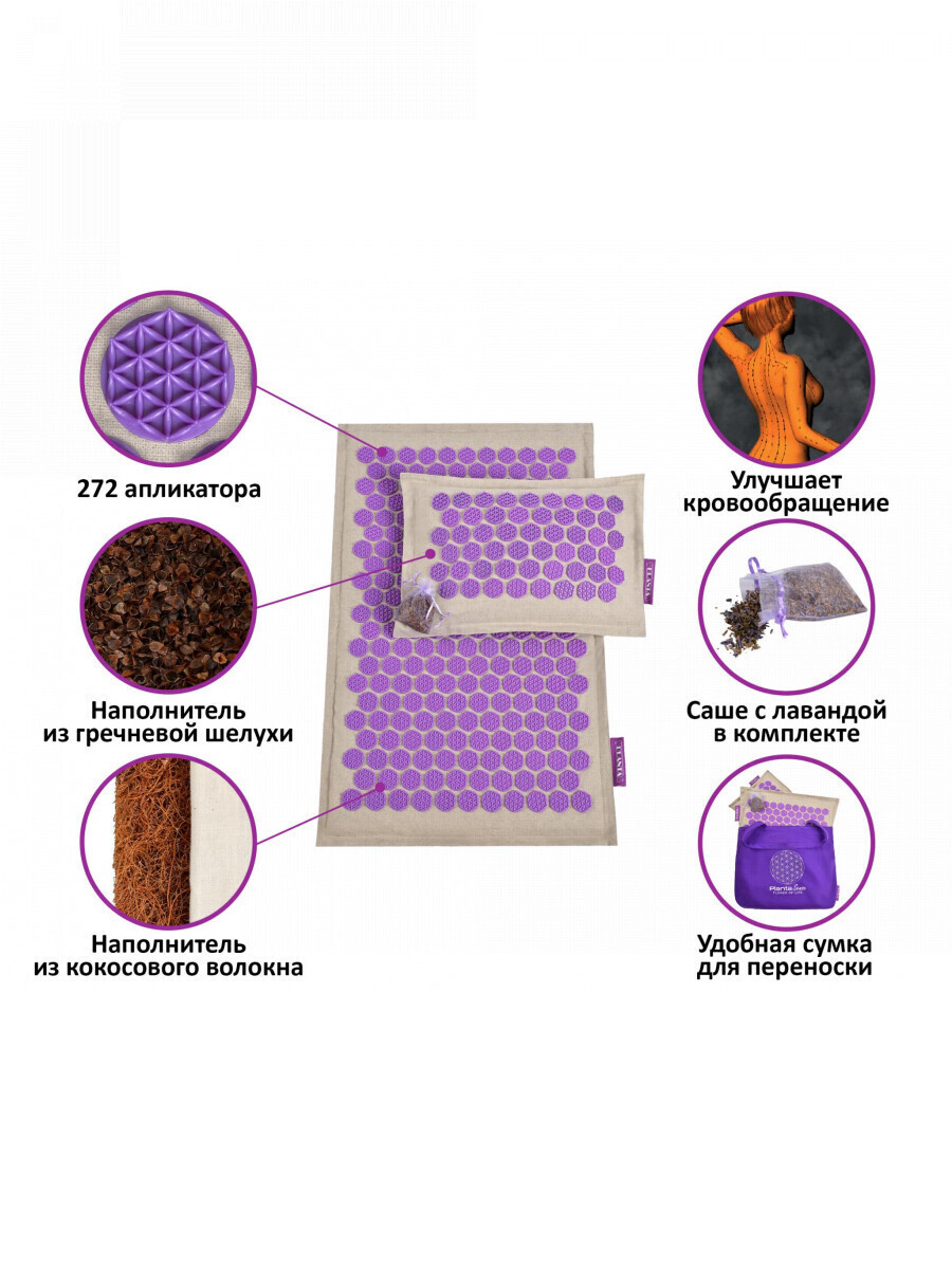 Массажный Акупунктурный коврик с подушкой (набор) и лавандовым саше