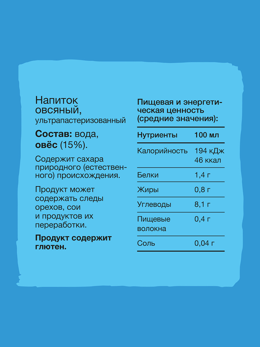 - Состав Вода, овес (15%).