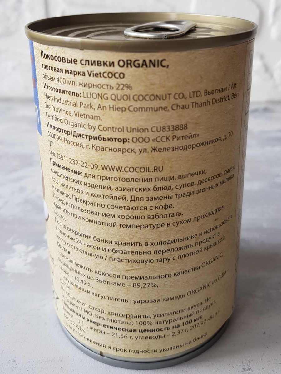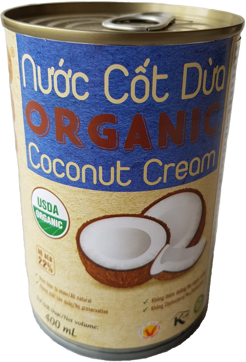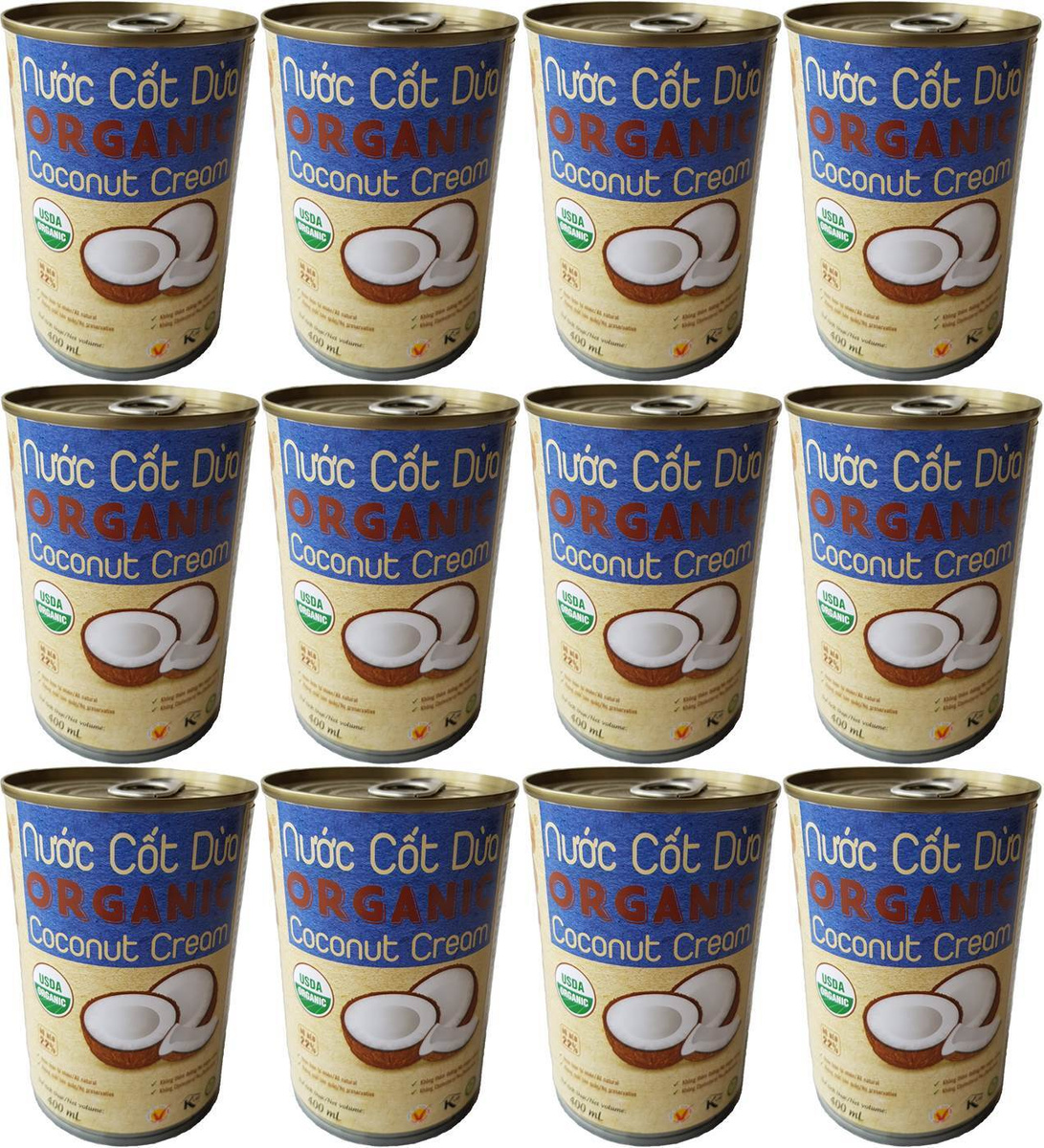 Кокосовые сливки органические 89% VietCOCO натуральные растительные в жестяной банке 400 мл 12 шт.