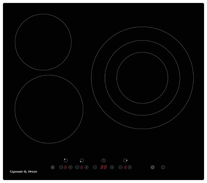 - Подробная информация о конфорках 1 элемент — 165 мм, 1200 Вт; 1 элемент — 200 мм, 1800 Вт; 1 элемент — 150/220/300 мм, 1050/1950/2700 Вт
