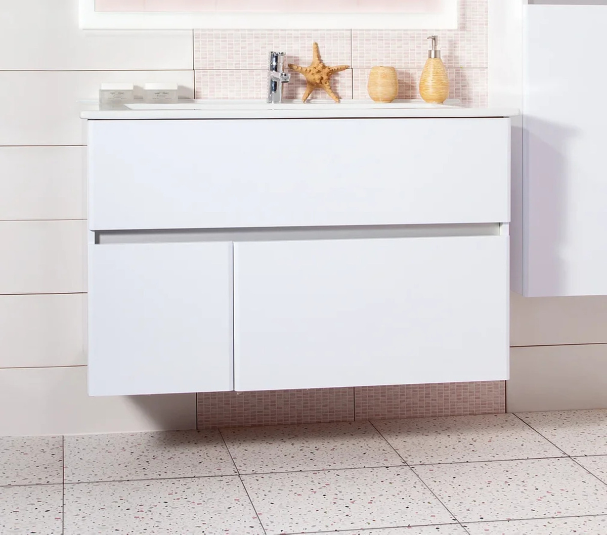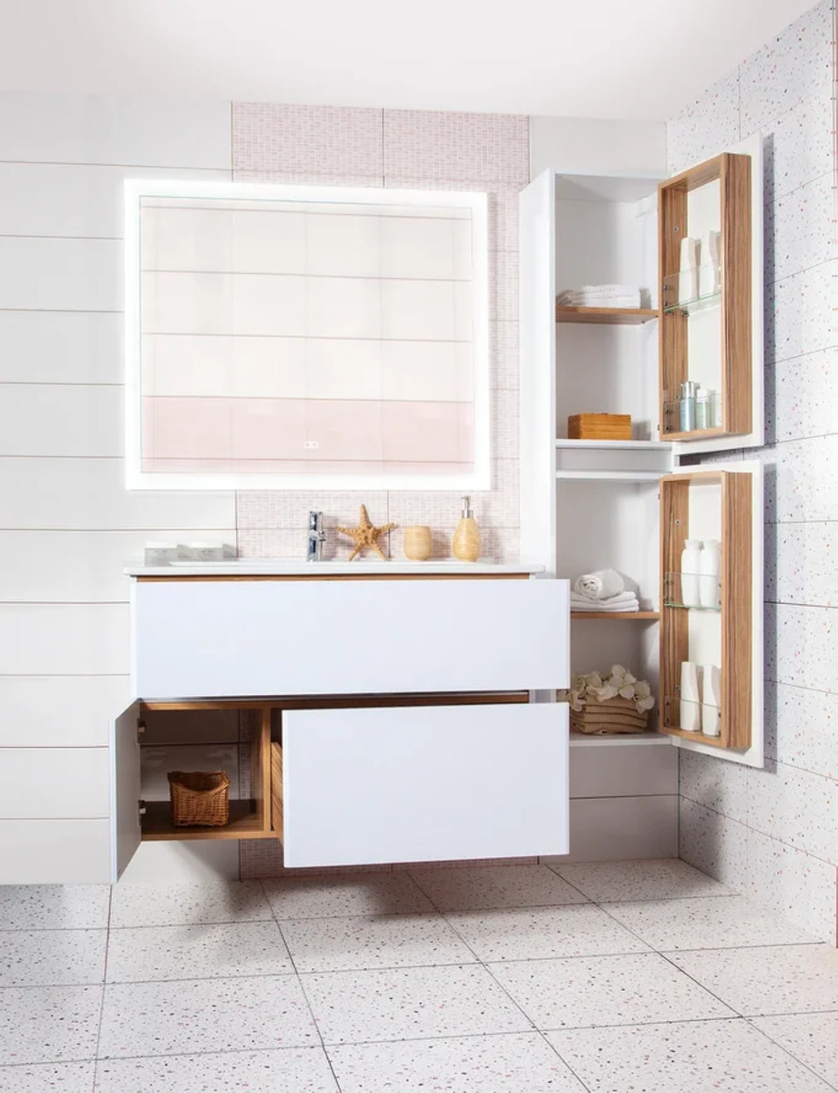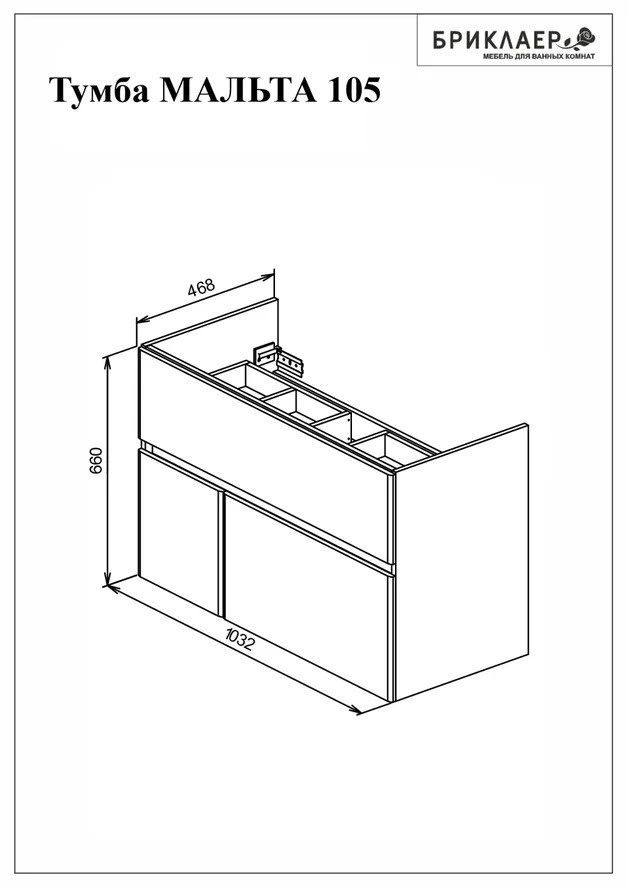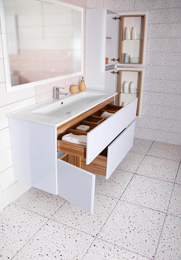 Тумба под умывальник Оскар 105, с двумя выдвижными ящиками с доводчиками и одной дверцей, МАЛЬТА 105