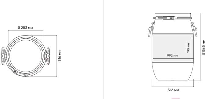 • Диаметр рукоятки/отверстия 253 мм (D горловины)