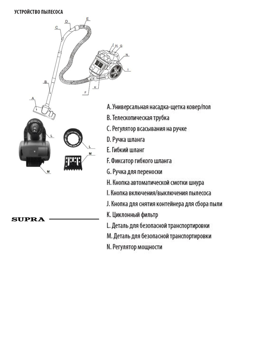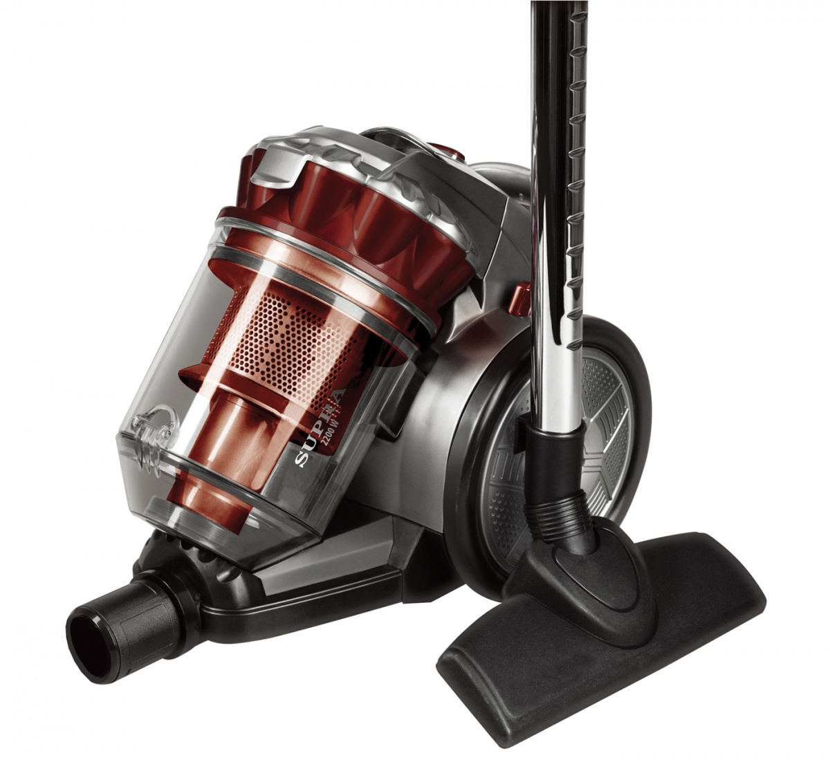 Бытовой пылесос Supra 2200 Вт, циклонного типа, моющиеся фильтры, 2 насадки, серый