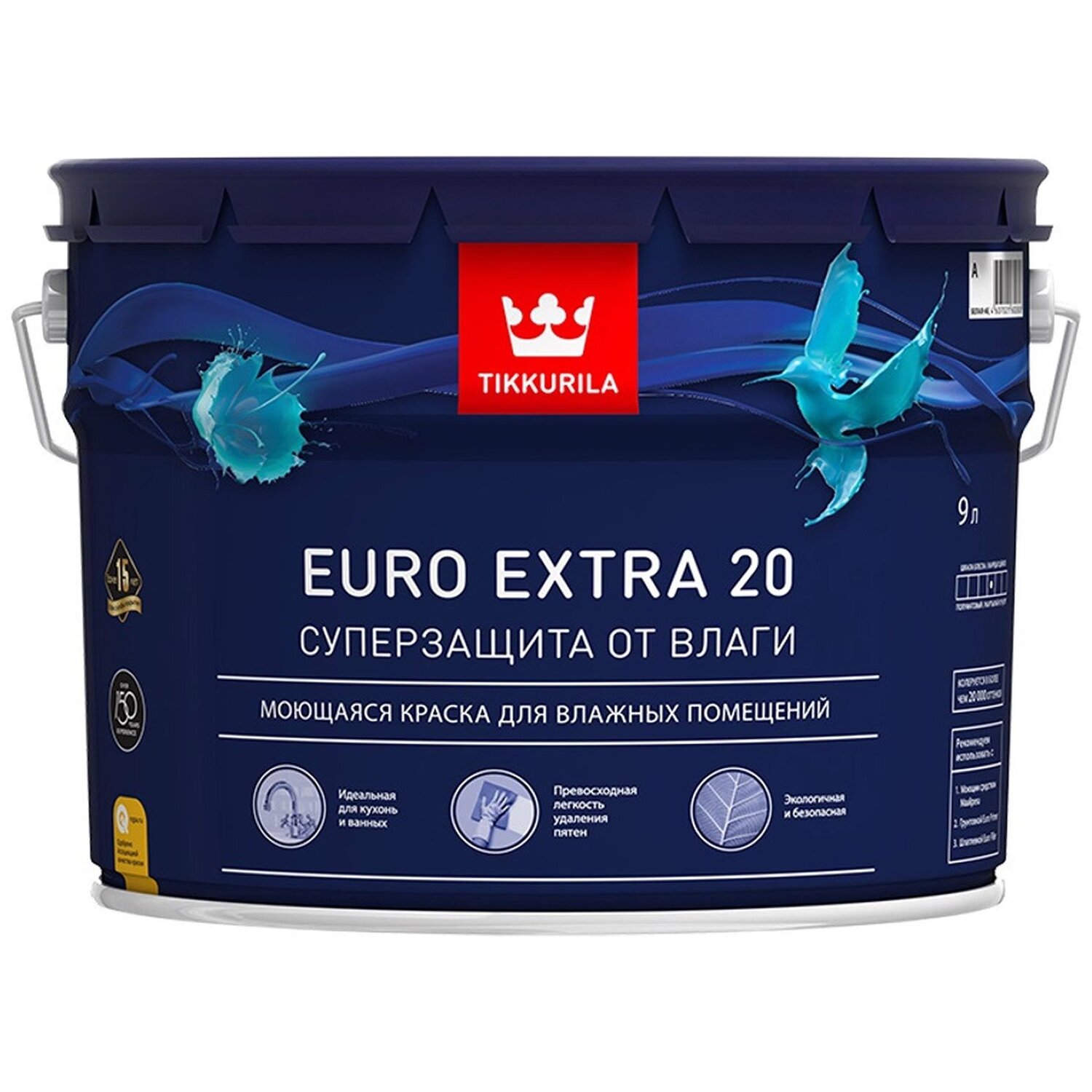 Краска интерьерная Tikkurila Euro Extra 20 полуматовая белая 9 л