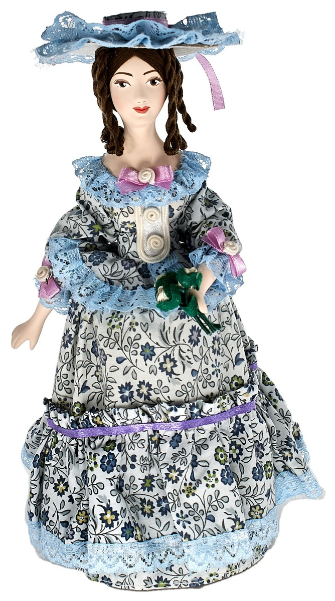 Фарфоровая кукла коллекционная Дама в светском костюме с букетом 19 век Петербург. Сувенир ручной работы