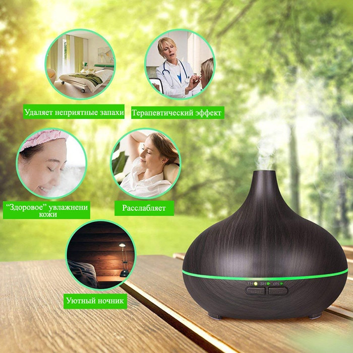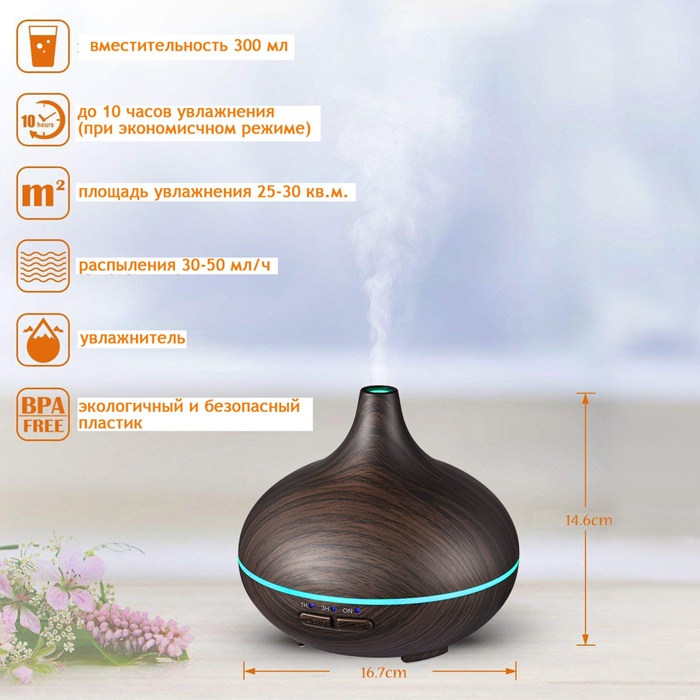 Арома увлажнитель, Aromic, AM-02 ультразвуковой аромадиффузор под темное дерево с таймером и 7-цветной подсветкой