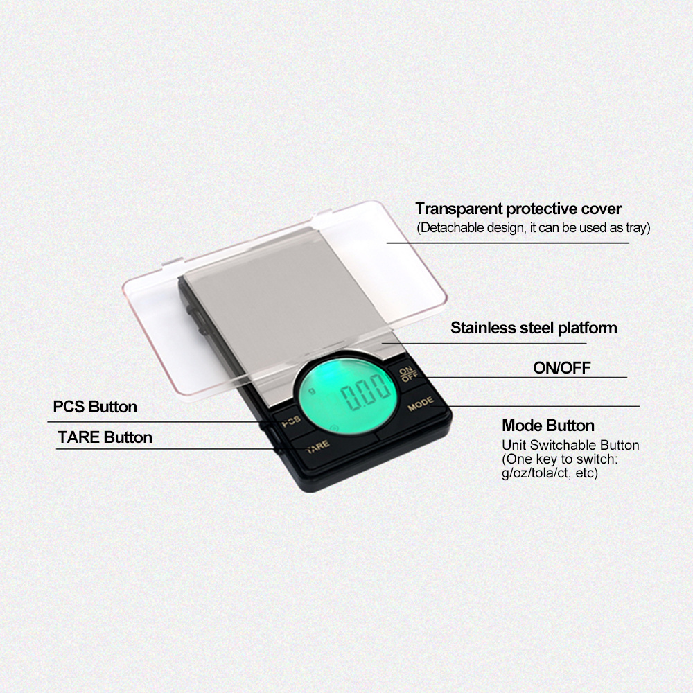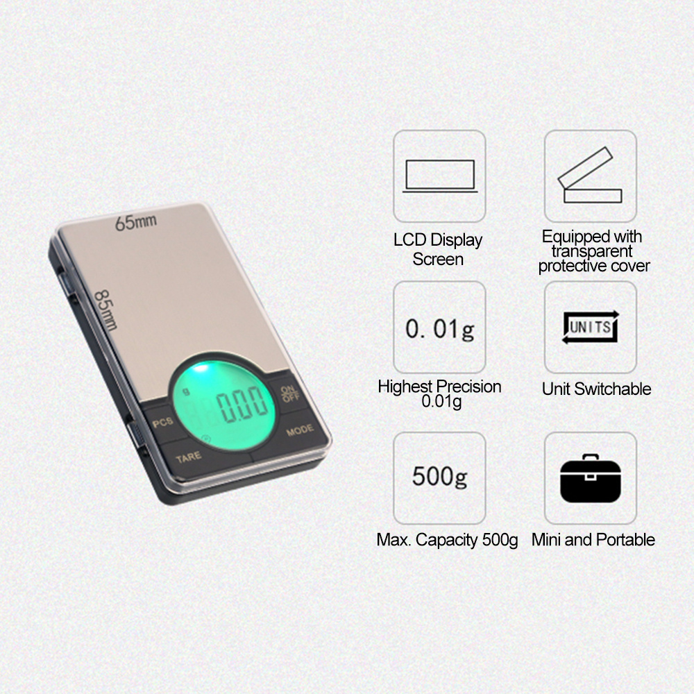 500 г / 0.1 г высокоточные электронные карманные весы мини жк-цифровые золотые ювелирные весы для взвешивания весов