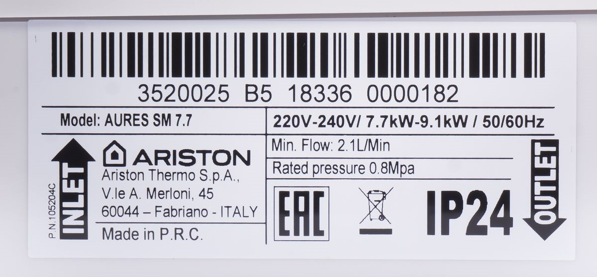 Водонагреватель проточный Ariston Aures SM 7.7
