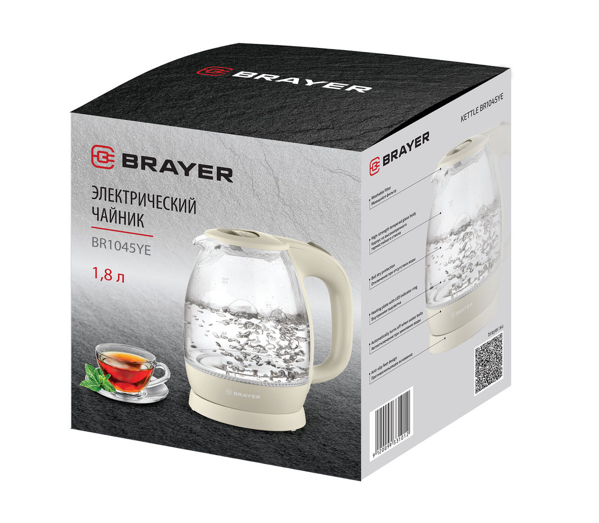 Электрический чайник Brayer BR1045YE, прозрачный, бежевый