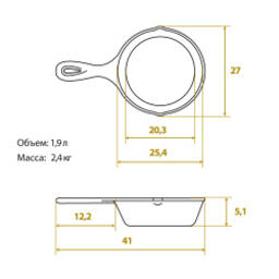 Сковорода Lodge чугунная, 26 см, с двумя ручками, 26 см
