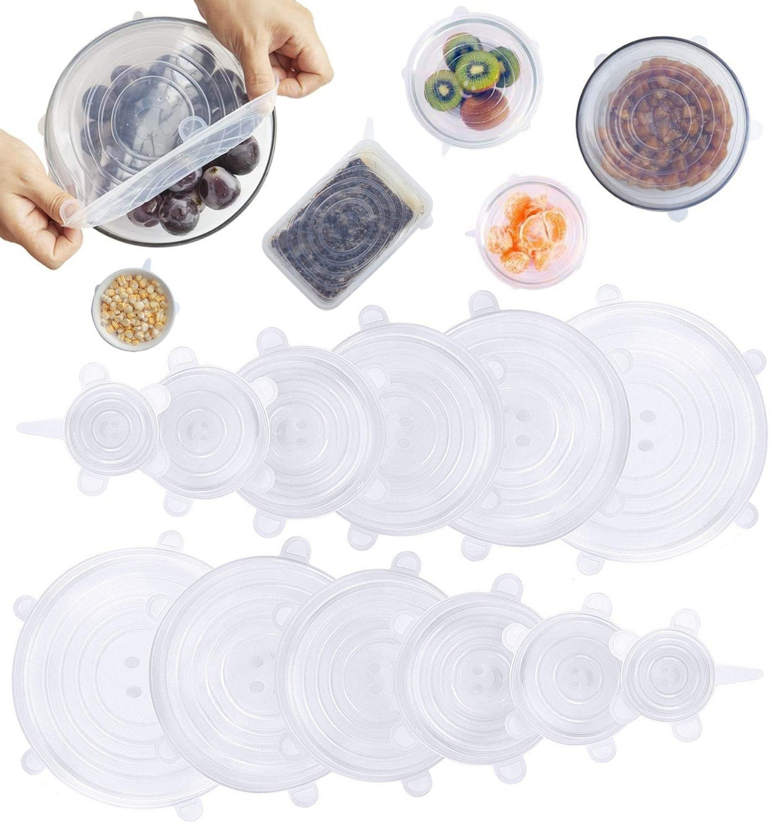 Крышка силиконовая SimpleShop, 12 шт, диаметр: 10, 12, 15, 17, 20, 7 см