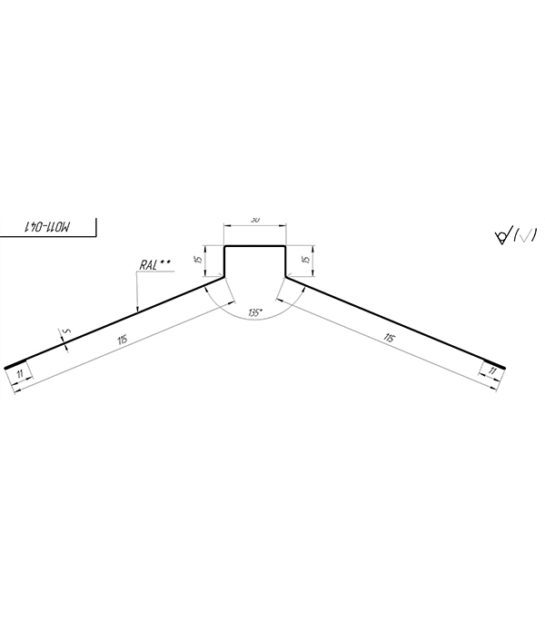 Конек для металлочерепицы плоский с пазом 115х30х115 мм 2 м зеленый RAL 6005