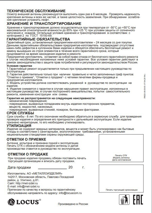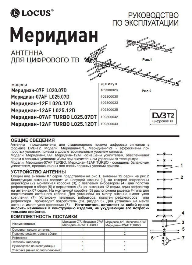 Уличная антенна Locus для цифрового ТВ, активная, наружная, Меридиан-12 AF TURBO с балансным усилителем