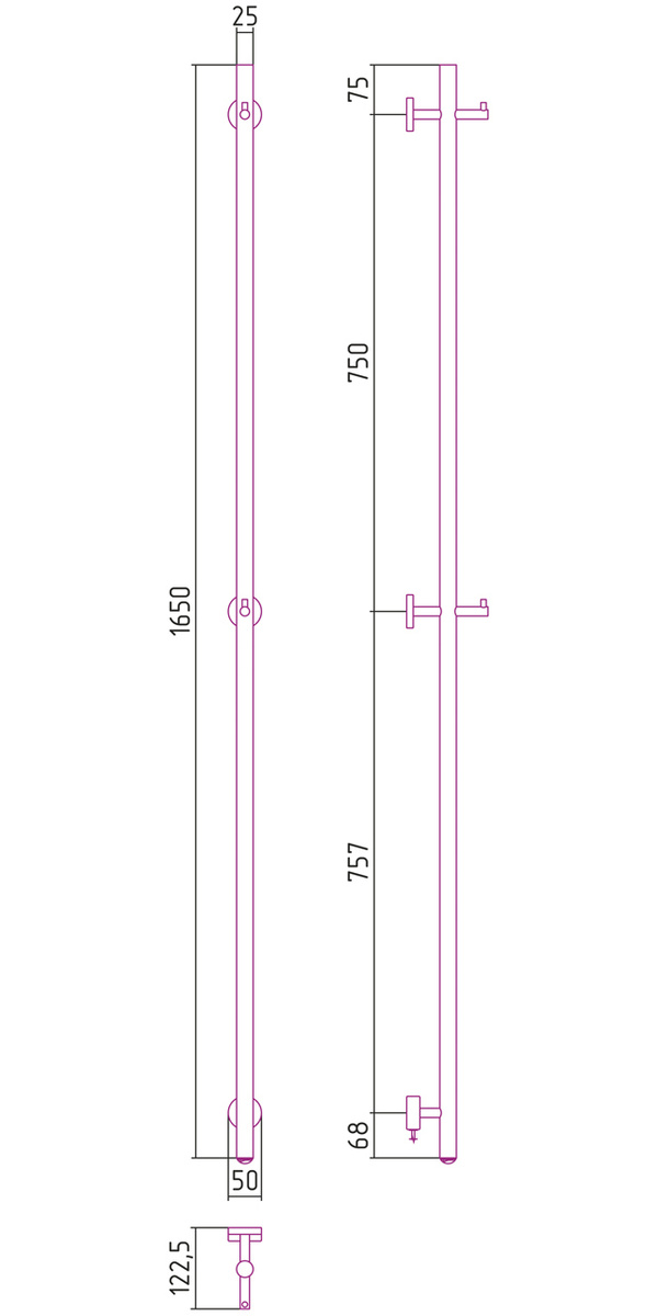 Полотенцесушитель электрический Сунержа Аскет 1650 матовый чёрный 31-0850-1650