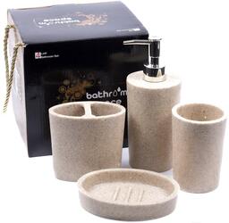 - Комплектация дозатор жидкого мыла, мыльница, стакан для зубных щеток, стакан косметический