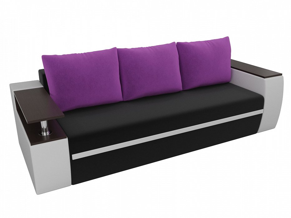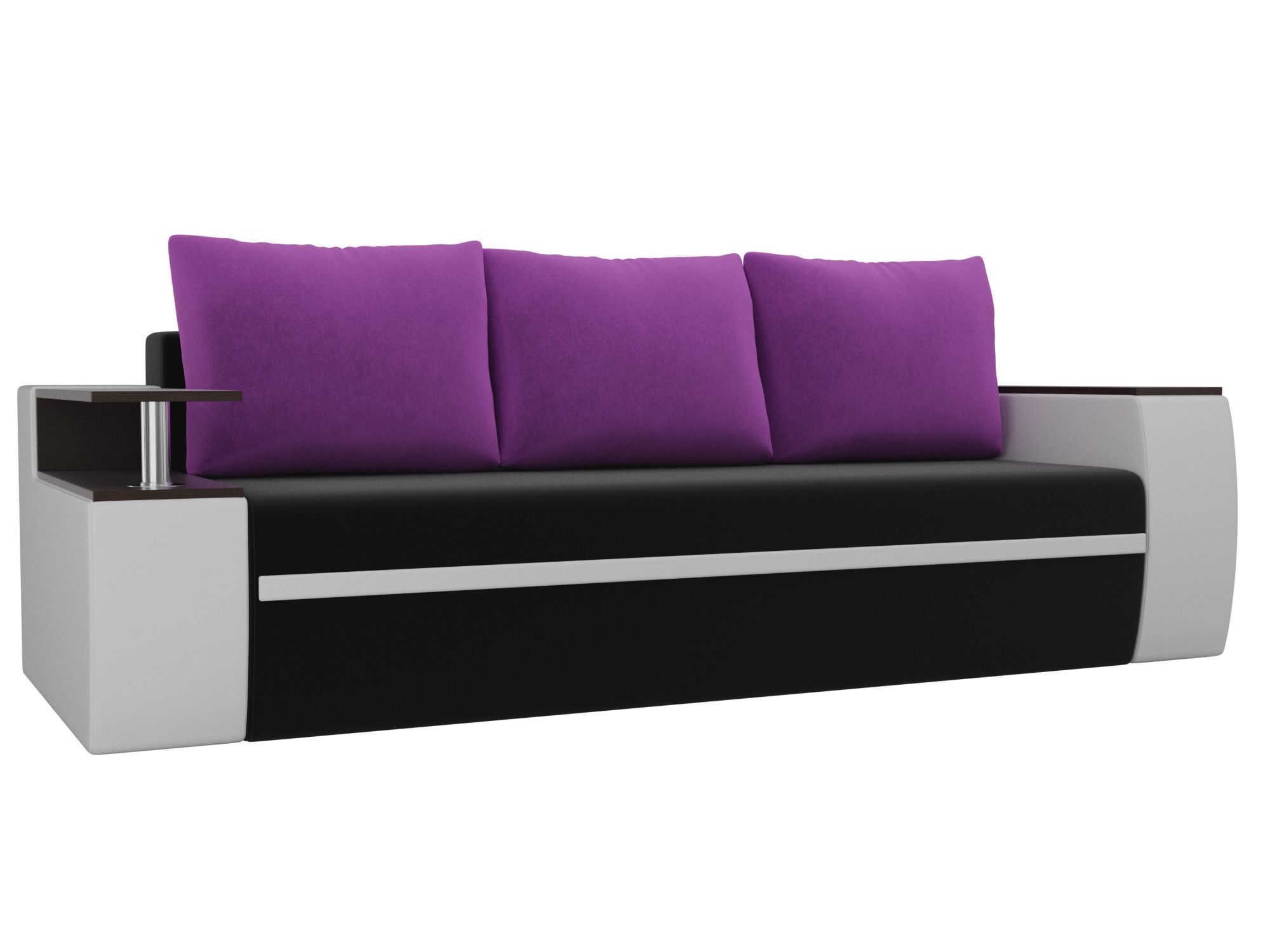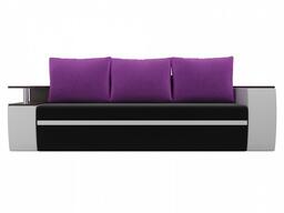 Прямой диван Майами Микровельвет\Экокожа\Микровельвет Черный\Белый\Фиолетовый