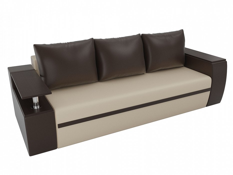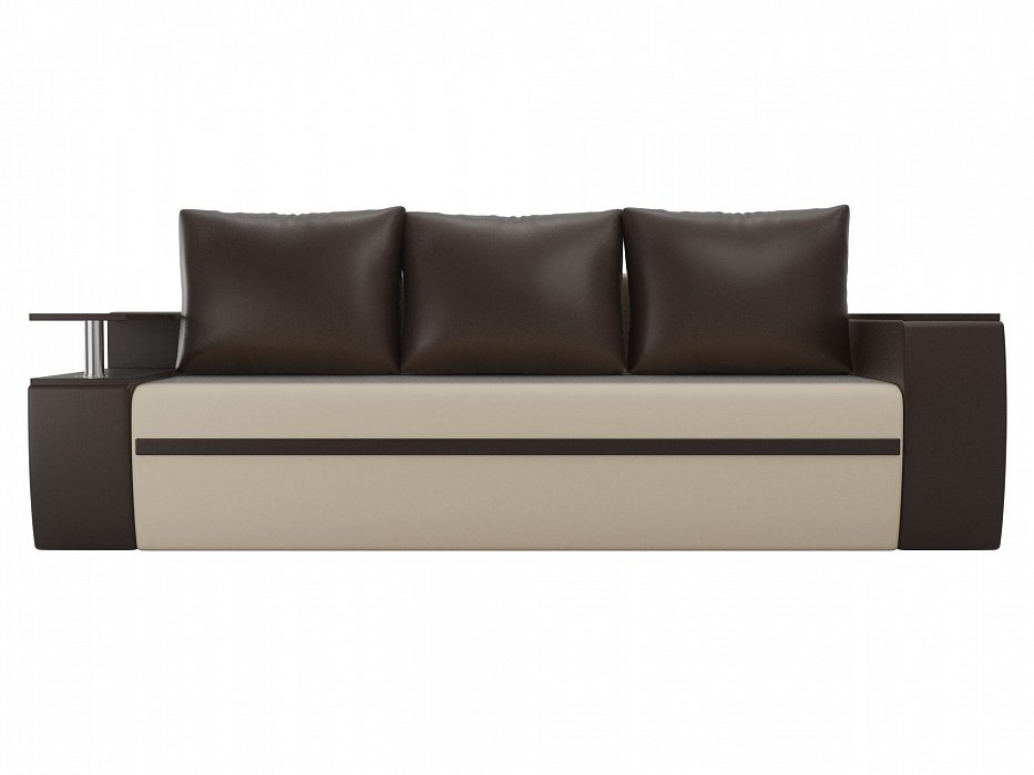 Прямой диван Майами Экокожа бежевый\коричневый