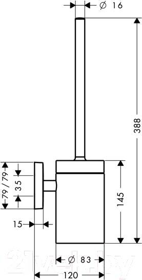 Ершик для унитаза Hansgrohe PuraVida 41505000; Коллекция: PuraVida (Hansgrohe); Материал: керамика, латунь; Комплектация: крепеж, держатель для ершика; Размещение: настенное; Высота: 38.8 см; Ширина: 8.3 см; Длина: 12;12 см