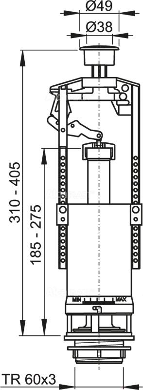 Арматура Alcaplast A2000; Цвет: белый, хром; Материал: АБС-пластик; Отверстие для установки: 49 мм; Высота: 31;31 см; Тип: арматура для бачка; Назначение: для бачка унитаза