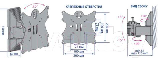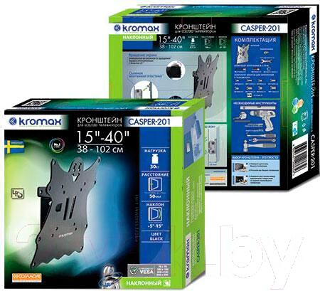 Кронштейн для телевизора Kromax Casper-201 (черный); Способ крепления: настенный; Виды регулировок: поворот, вращение; Макс. нагрузка: 30 кг; Диагональ телевизора: 15;40 "; Цвет: черный; Тип: кронштейн для телевизора