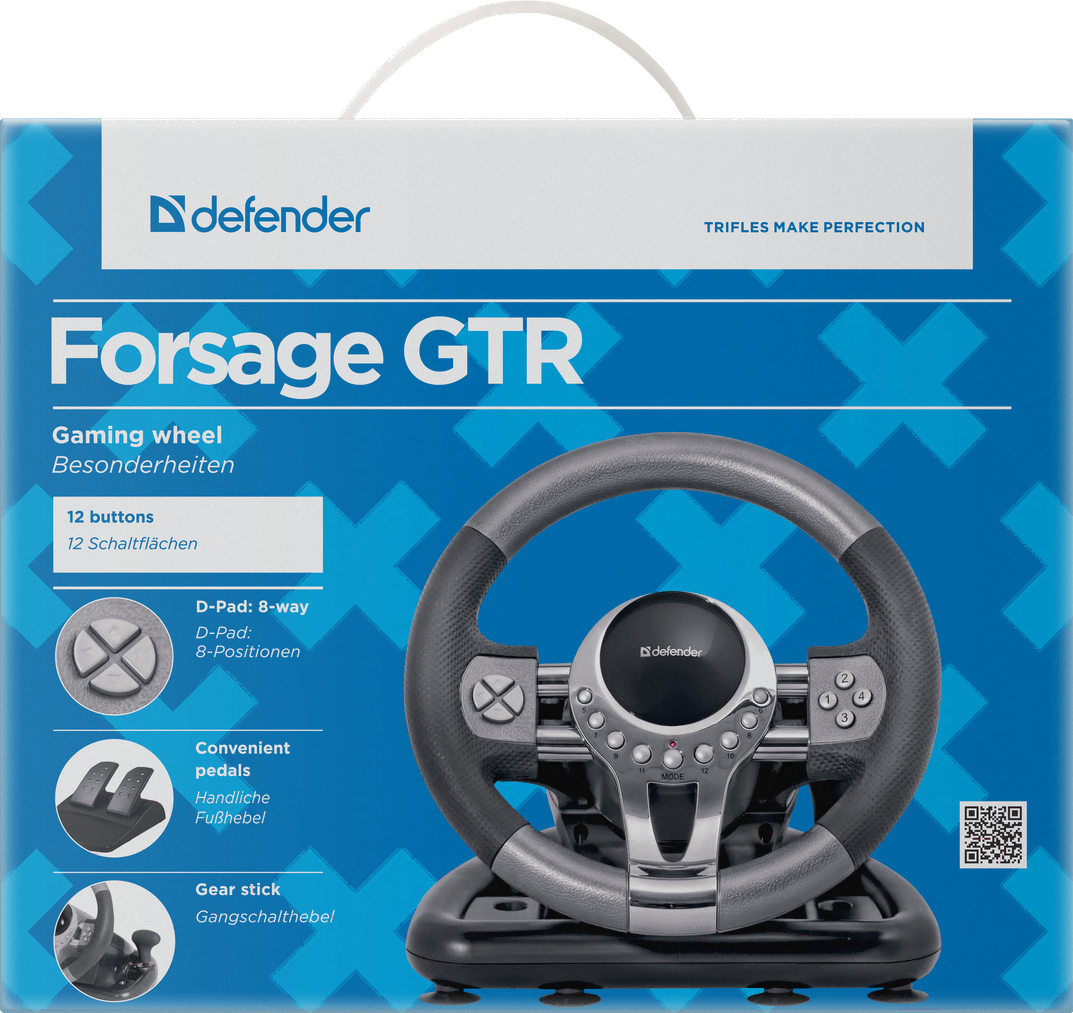 Игровой руль Defender Forsage GTR; Совместимость: PC; Количество кнопок: 12; Тип связи: проводной