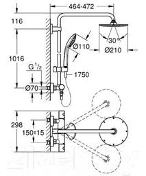 Душевая система GROHE Euphoria XXL System 27964000; Тип: душевая система; В комплекте: верхний душ, держатель, штанга, смеситель, душевой шланг, душевой кронштейн, лейка ручная; Материал панели/стойки: латунь; Высота панели/стойки: 101.6;101.6 см; Ширина/диаметр ручной лейки: 11 см; Ширина/диаметр верхней лейки: 21 см; Режимы ручного душа: 3; Режимы верхнего душа: 1; Длина шланга: 175 см