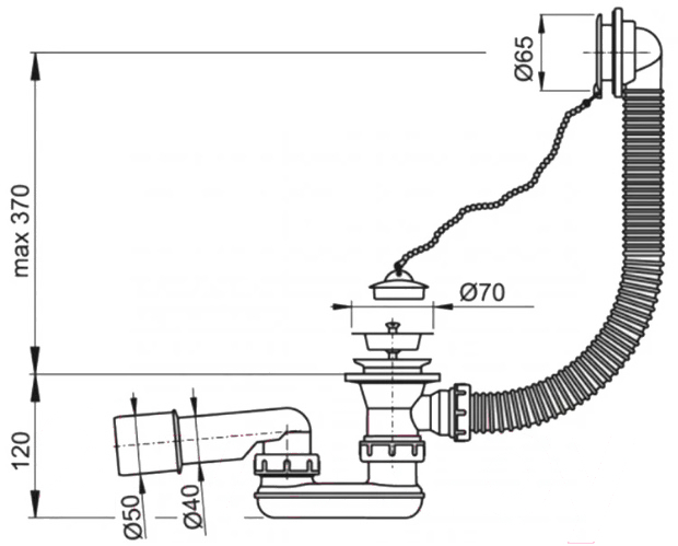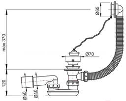 Слив-перелив Alcaplast A501; Назначение: для ванны; Вид гидрозатвора: водный; Материал: АБС-пластик; Механизм перекрытия сливного отверстия: механический (ручной); Скорость стока воды: 43 л/мин; Термическая устойчивость: 95 °C; Длина: 31;31 см