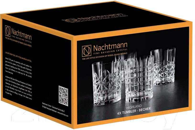 Набор стаканов Nachtmann Highland / 95906 (4 шт); Материал: хрустальное стекло; В наборе: бокал; Объем посуды для питья: 345 мл; Назначение: для виски