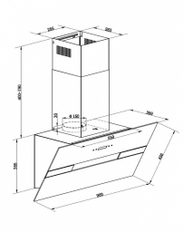 - Дополнительная информация Конструкция наклонная, монтаж настенный, управление сенсорное, производительность мотора 1050 м³/ч, ширина 90 см