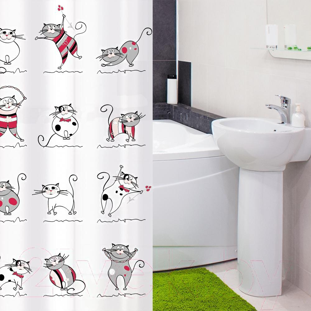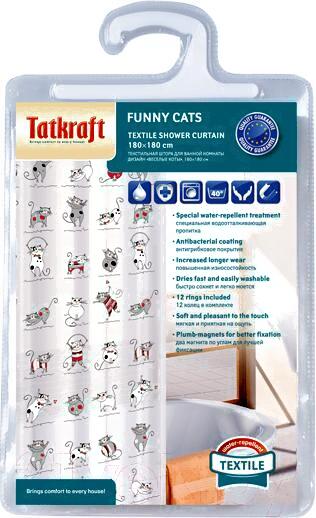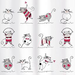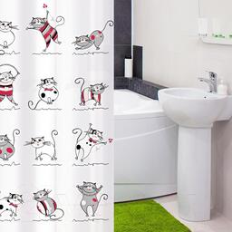 Шторка-занавеска для ванны Tatkraft Fanny Cats 14664; Материал шторки: полиэстер; Длина: 180;180 см; Высота: 180 см