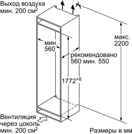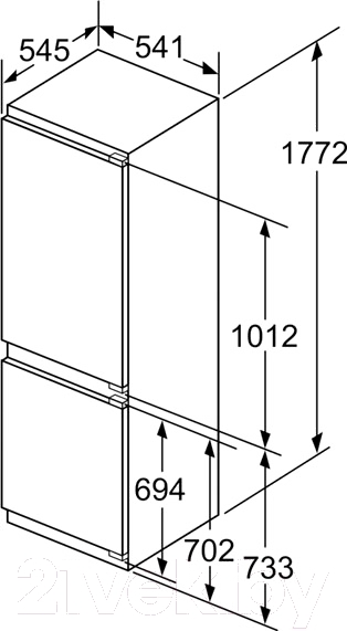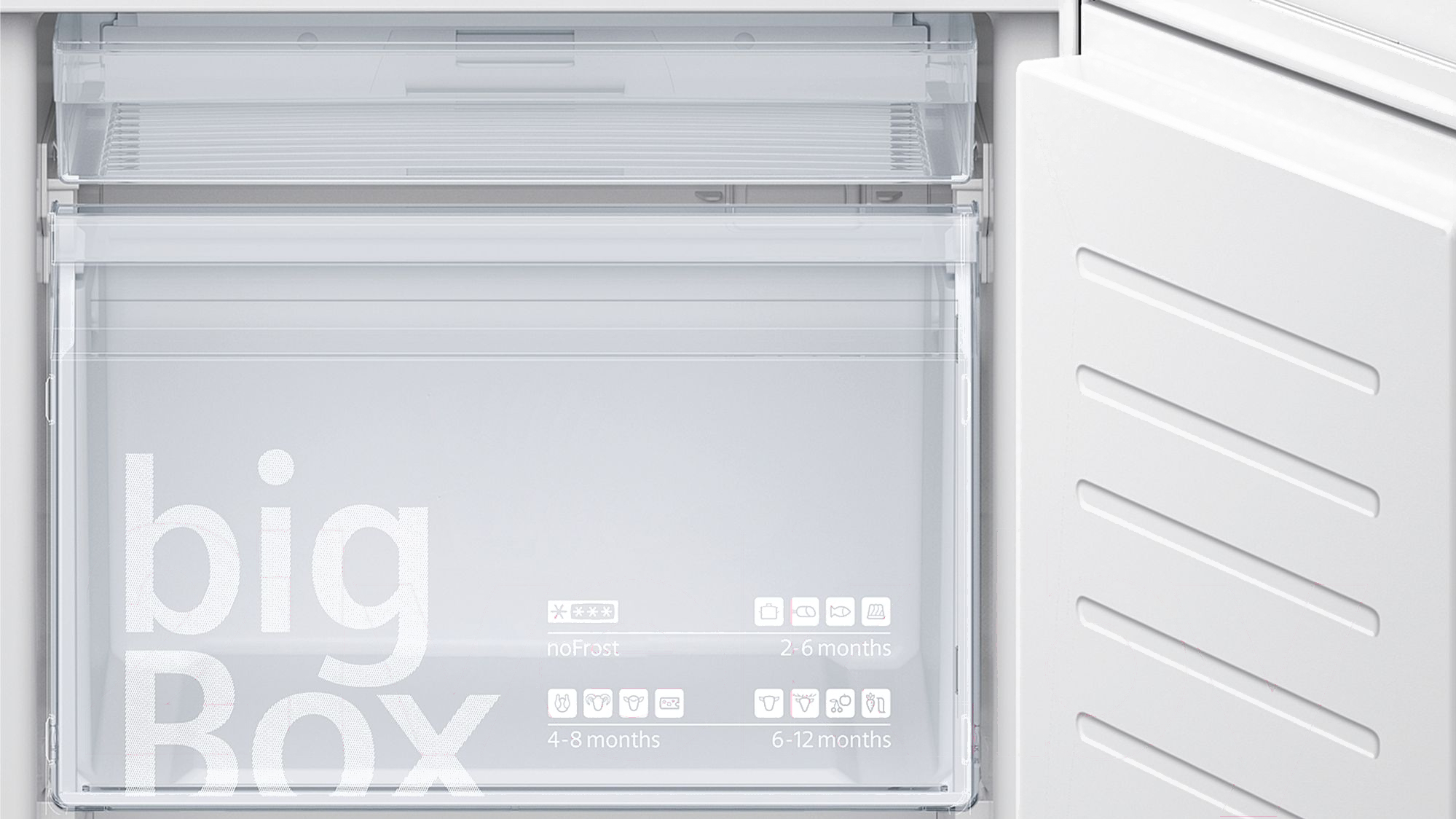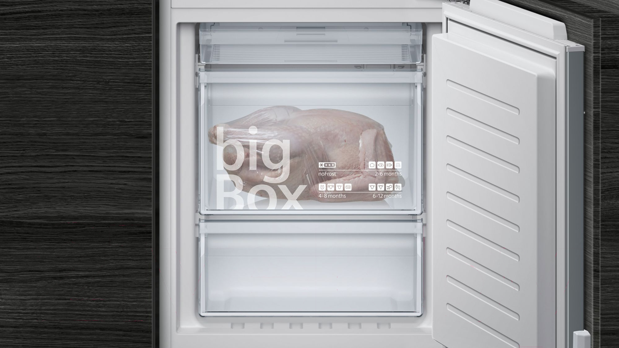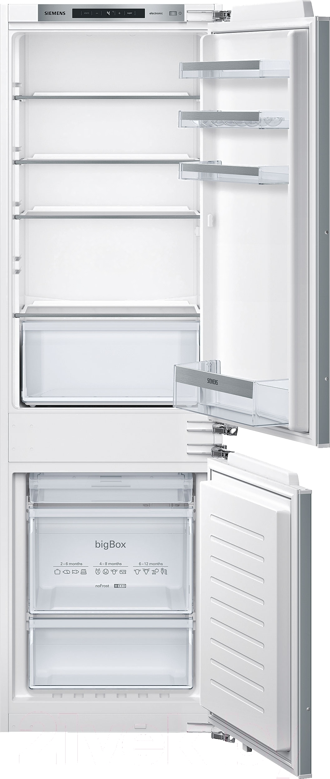 Встраиваемый холодильник Siemens KI86NVF20R; Камеры: морозильная, холодильная; Система No Frost: есть; Класс энергопотребления: A+; Годовой расход электроэнергии: 222 кВт*ч; Высота: 177.2 см; Ширина: 54.1 см
