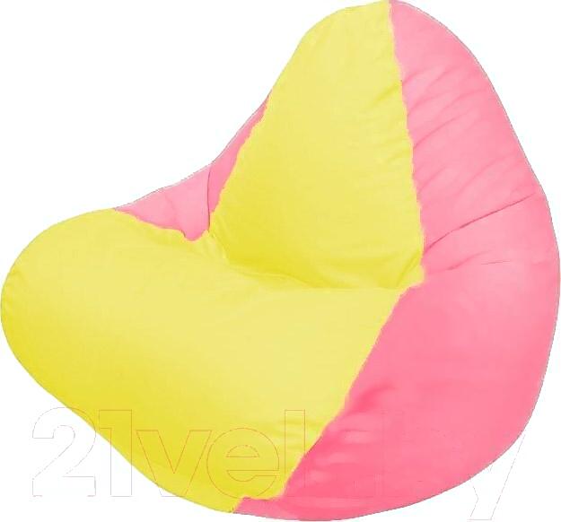 Бескаркасное кресло Flagman Relax Г4.1-035 (желтый/розовый); Тип: бескаркасное кресло; Ширина: 100 см; Высота: 105 см; Материал: оксфорд; Размер: Макси; Цвет: желтый, розовый; Внешний вид: классический; Съемный чехол: есть; Длина: 100 см