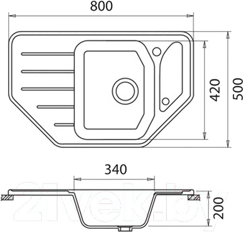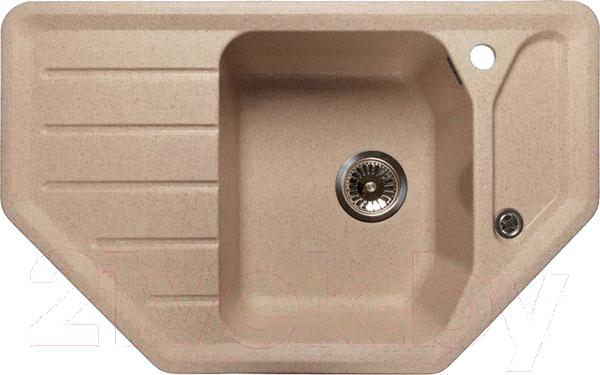 Мойка кухонная GranFest Corner GF-C800E (песок); Диаметр сливного отверстия: 3.5"; Длина/диаметр мойки: 80 см; Ширина мойки: 50 см; Материал: искусственный мрамор; Комплект поставки: слив, сифон, корзинчатый вентиль 3.5"