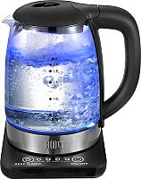 Электрочайник Holt HT-KT-001 (черный); Мощность: 2200 Вт; Объем: 2 л; Подставка: с возможностью вращения; Материал корпуса: стекло; Терморегулятор: есть