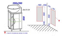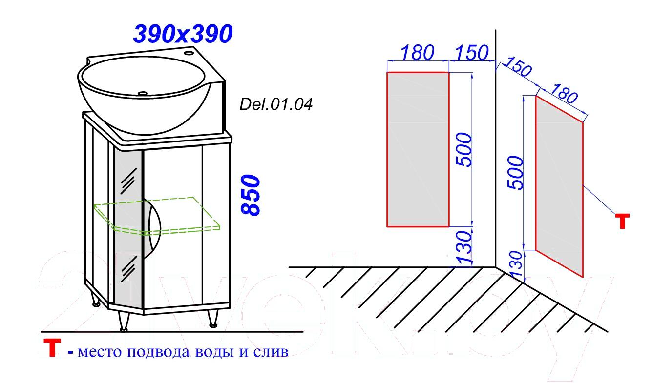 Тумба с умывальником Aqwella Дельта 45 / Del.01.04; Материал (каркаса): МДФ; Элементы набора: полка, шкафчик; Высота: 85 см; Ширина: 55 см; Глубина: 39 см; Крепежи в комплекте: есть; Комплектация: крепежи, полка, ручка, петли, дверца, умывальник; Установка: напольная; Встроенная подсветка: нет; Умывальник в комплекте: есть