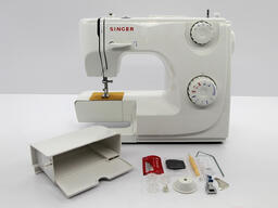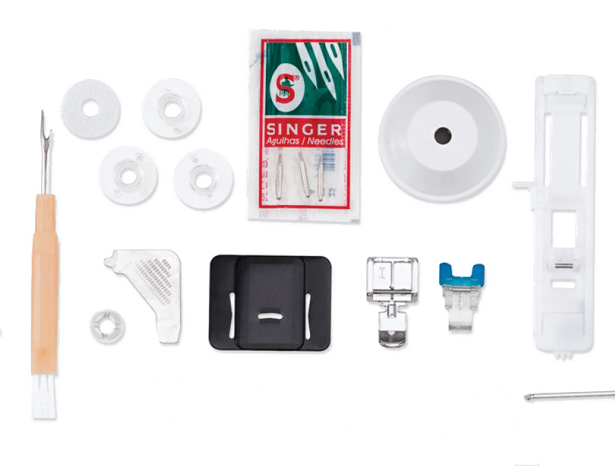 • Дополнительная комплектация направитель, комплект игл (универсальных №90 3 шт.), нож-вспарыватель, шпулька (4 шт.), педаль, отвертка (плоская), щеточка, катушкодержатель (большой, малый), инструкция, пластина для штопки и вышивки