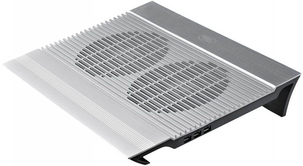 Подставка для ноутбука Deepcool N8 (серебристый); Назначение: охлаждающая, эргономичная; Диагональ экрана ноутбука: 17;17 "; Охлаждение: активное; Макс. уровень шума: 25.1 дБ; Материал корпуса: алюминий; Диаметр вентилятора: 140 мм; Вес: 1244 г