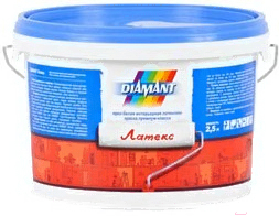 Краска Diamant Латекс акриловая (2.5л, белый); Назначение: для стен, для потолков; Тип работ: внутренние; Вид окрашиваемого материала: бетон, штукатурка, кирпич, керамика, цемент, гипсокартон, зашпатлеванные поверхности; Цвет: белый; Степень глянца: матовая; Объем: 2.5 л; Свойства: высокая адгезия к основанию, высокопрочная, высокоукрывистая, стойкая к пожелтению, экологичная; Возможность колеровки: есть