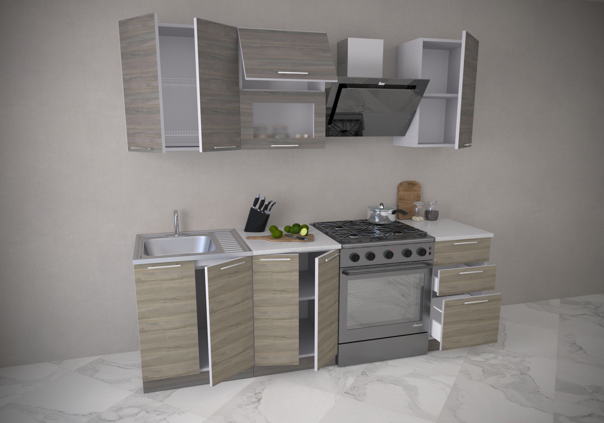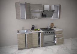 Готовая кухня Иволанд Трейд Вяз 150-220-60 (светлый/темный); Длина кухни: 150 см; Конструкция кухни: линейная; Материал фасада: ЛДСП; Столешница: отдельная на каждый шкаф; Ширина шкафа под мойку: 60 см; Материал каркаса: ЛДСП; Установка мойки: накладная мойка; Ширина кухни: 60 см; Тип фасада: прямой