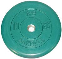 Диск для штанги MB Barbell d26мм 10кг (зеленый); Тип: диск для штанги; Покрытие: обрезиненное; Диаметр отверстия: 26 мм; Вес: 10 кг; Цвет: зеленый