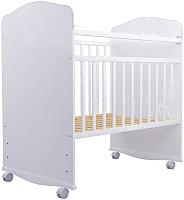 Детская кроватка Агат Золушка 8 (белый); Тип: детская кроватка; Механизм качания: полозья; Материал: массив дерева, ЛДСП; Тип древесины: береза; Цвет: белый; Колеса: есть; Тип днища: реечное; Длина ложа: 120 см